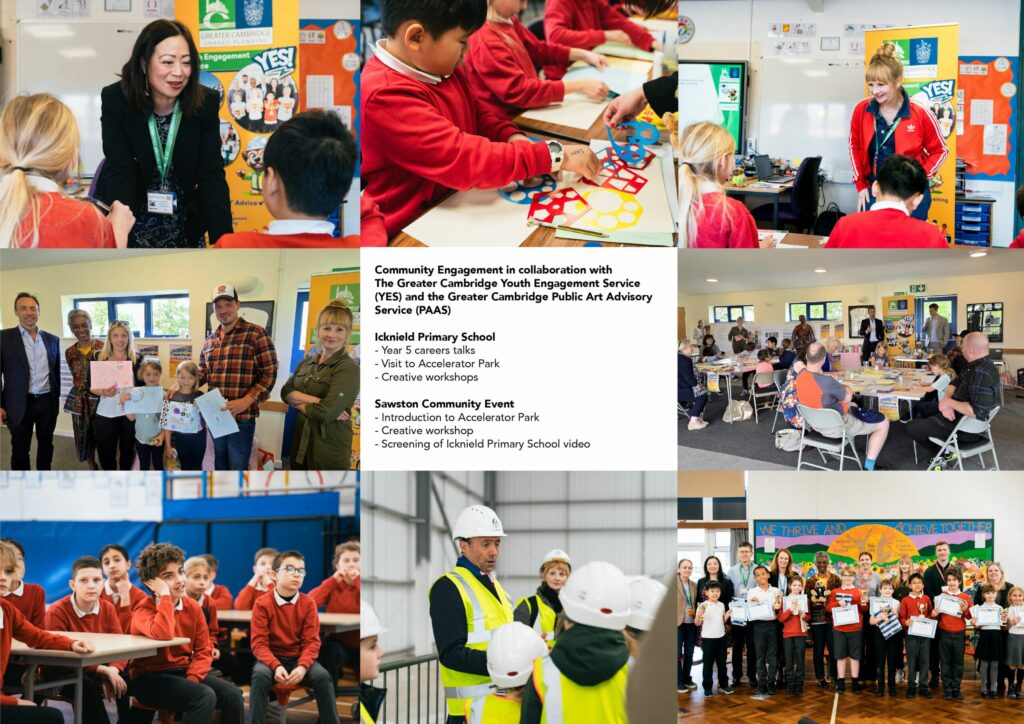 This new public artwork for Accelerator Park has been created by artist Charley Peters in collaboration with local schools and community groups. The project celebrates Cambridge’s legacy of scientific discovery through a visual language of abstract symbols. The design takes inspiration from retro scientific diagrams, early computing graphics, and vintage textbooks — imagery that feels both familiar and timeless. Translated into large-scale, laser-cut aluminium panels, these abstract motifs layer and interconnect, flowing across the fence like a continuous rhythm. Suggesting atoms, planetary movement, data streams, and networks of knowledge, the artwork evokes the energy of scientific progress across many disciplines. Workshops with pupils from Icknield Primary School and members of the Sawston community played an important role in shaping the design. The children’s drawings revealed how young people view science as playful and interlinked, while the community responses brought clarity, symbolism, and reflections on how science shapes everyday life. Together, these perspectives have been distilled into Peters’ artwork — a composition that is both dynamic and enduring. Quantum Frequency transforms Accelerator Park’s boundary into a landmark that reflects science not only as a discipline but as a shared human endeavour — connecting history, community, and imagination.
